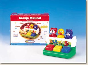 DESCRIPCIÓN DEL JUGUETE: Juguete que emite ocho melodías con los sonidos característicos de los tres animales que representa. Al apretar las teclas, se acciona el sonido y, al mismo tiempo, el animal correspondiente abre y cierra la boca. Funciona con pilas (incluidas).