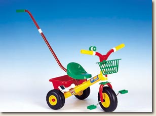 Cuando el triciclo es empujado por el adulto los pedales quedan fijos, evitando con ello