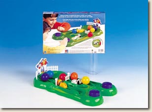 jugadores realizado en plástico. Consta de cinco bolas y dos perros que, accionados por